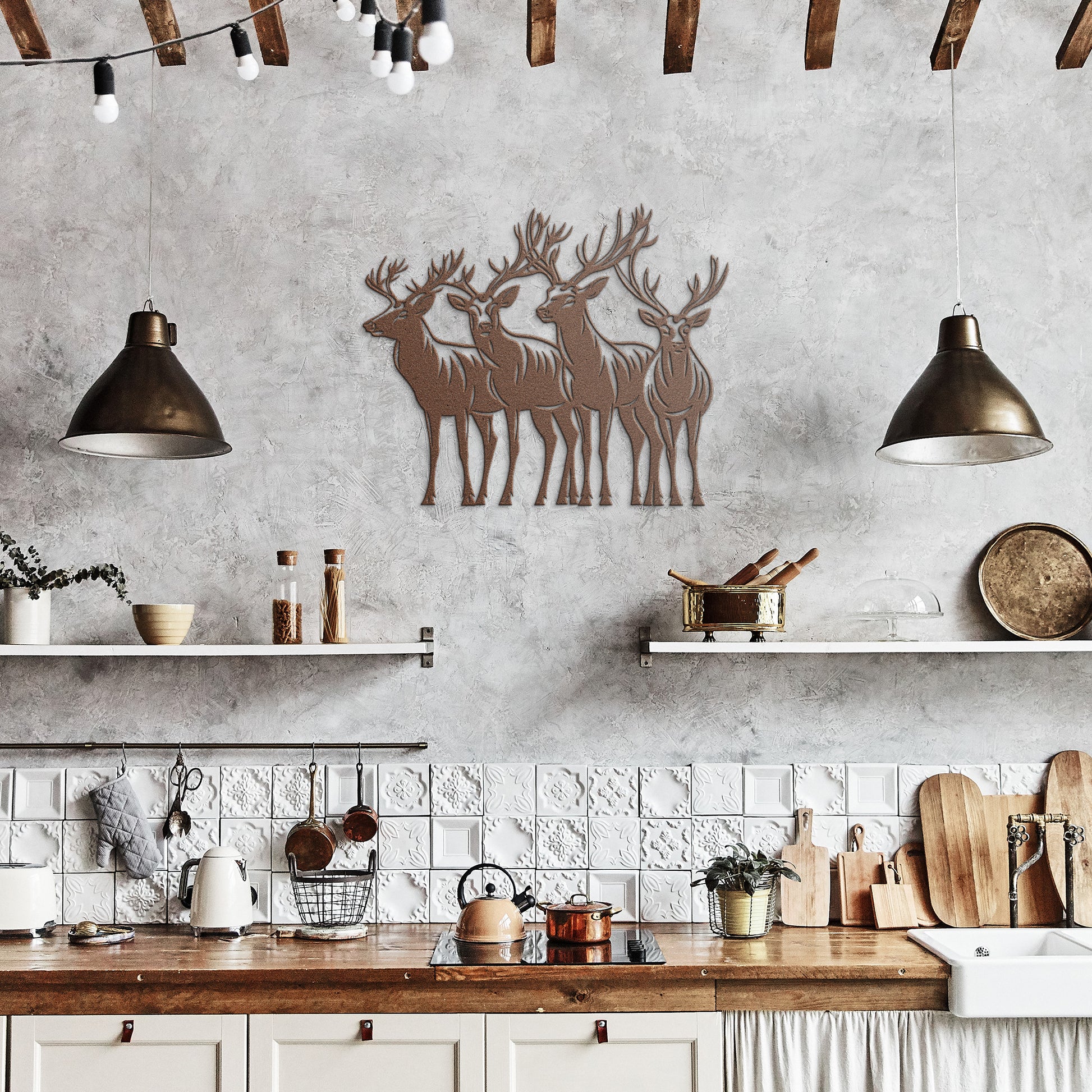 Group of Deer Elk Metal Sign, Deer Buck Art, Cabin Decoration, Housewarming Gift