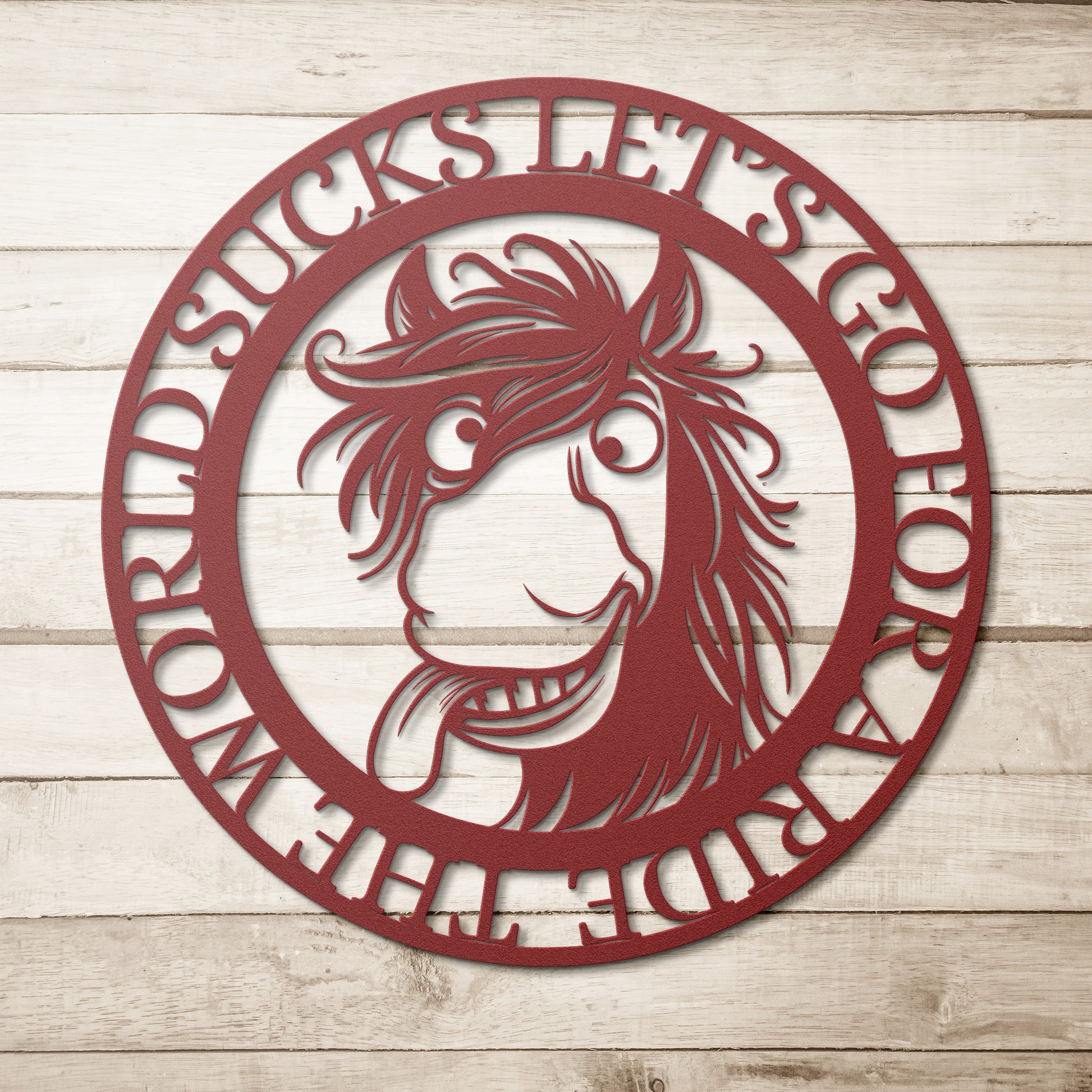 THE WORLD SUCKS LET'S GO FOR A RIDE METAL SIGN